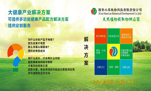 西安市小草植物科技有限責任公司成立于2004年,工廠位于西安市周至縣集賢工業(yè)區(qū),辦公室位于西安高新區(qū),一家具有進出口權(quán)的技術(shù)型民營企業(yè)。